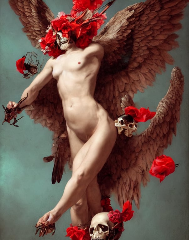 Prompthunt Fallen Angel By Roberto Ferri Silk Fabric Birds Skulls Bones Flowers Red Plastic Baroque Elements Human Skull Intricate Artwork By Roberto Ferri Halo Octane Render Cinematic Hyper Realism Octane Render 8k
